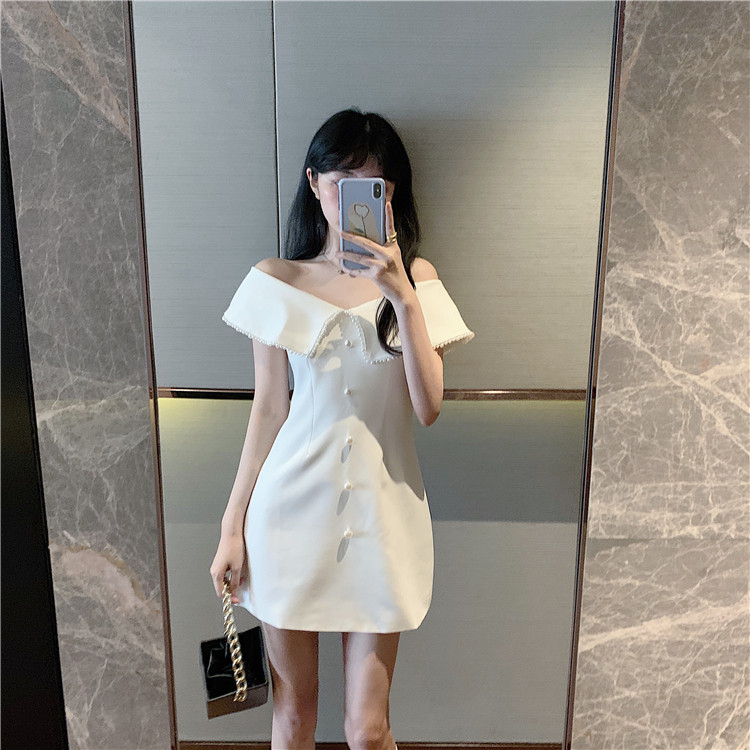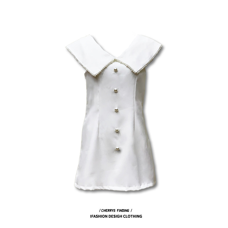 French niche Hepburn style white princess skirt age reduction beaded one-shoulder high-rise dress dating small skirt summer