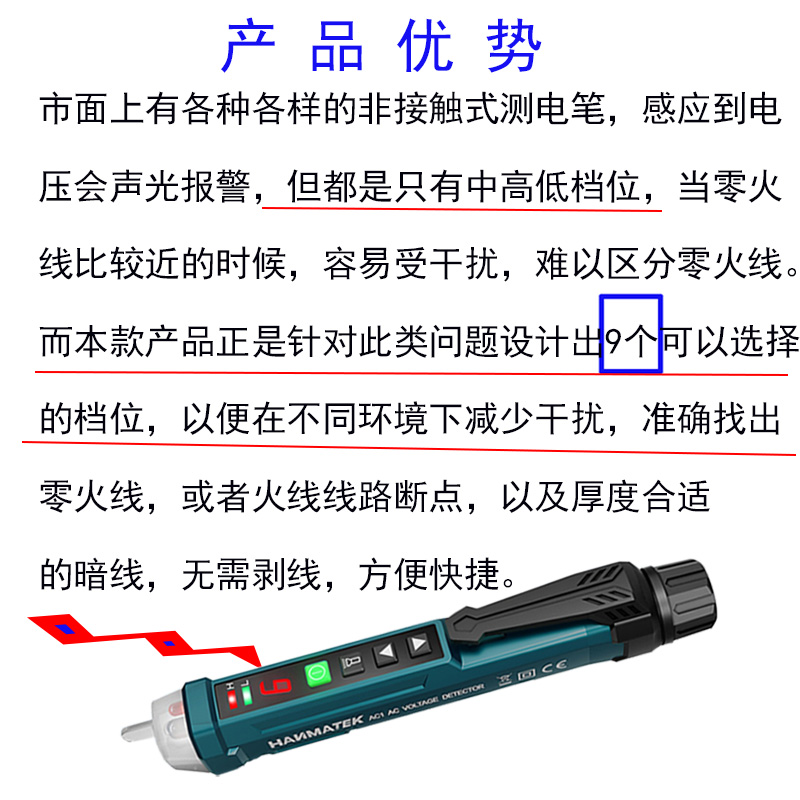 9-gear induction electrotest pen line detection electrician multifunctional high-sensitivity home intelligent electrotest pen woodworking