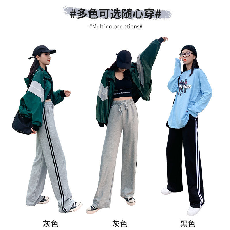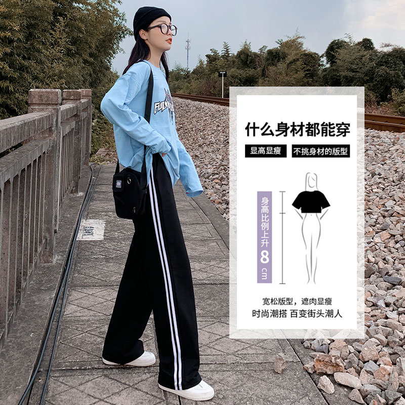 Double-Lever Leg Pants Woman Spring Autumn High Waist 2022 New Pituality Students Straight Drum Loose Casual Tug Sports Pants