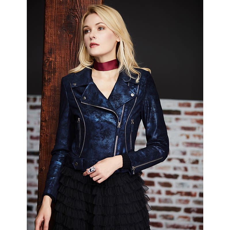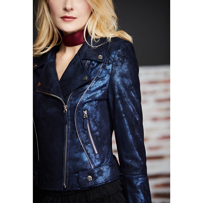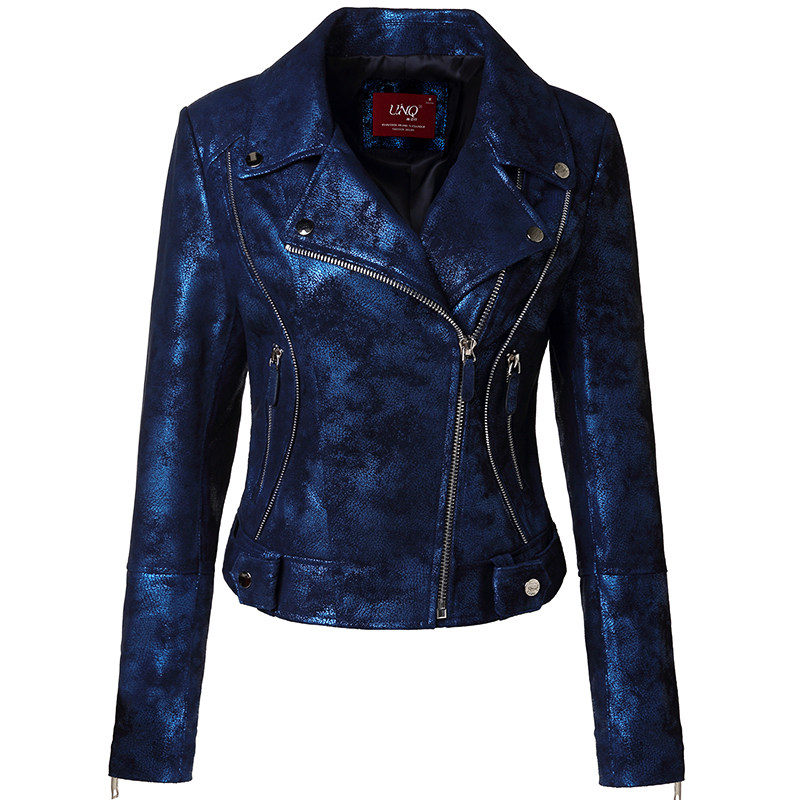 U N Q light luxury tone Advanced sense starry sky blue pearl sheepskin slim-fit short motorcycle leather leather jacket for women