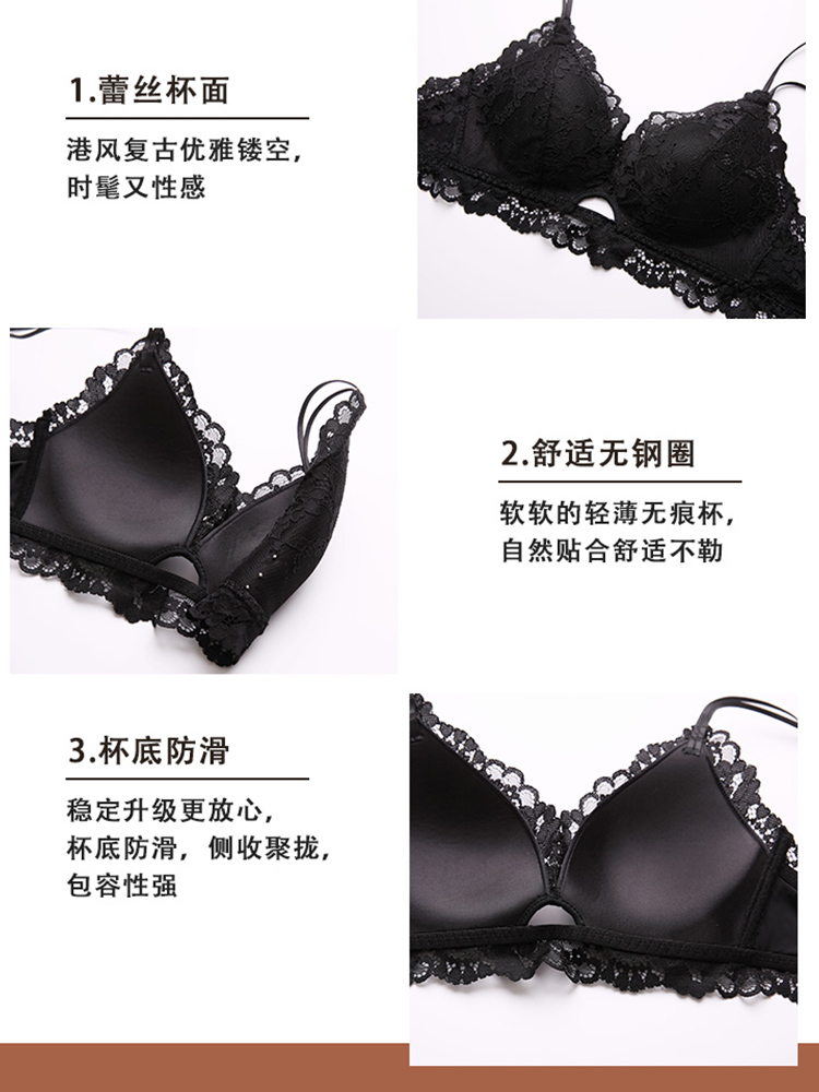 New Winter Comfort Beauty Back Underwear Women No Steel Ring Small Breasts Gather Sexy Lace Girl Lingerie Suit