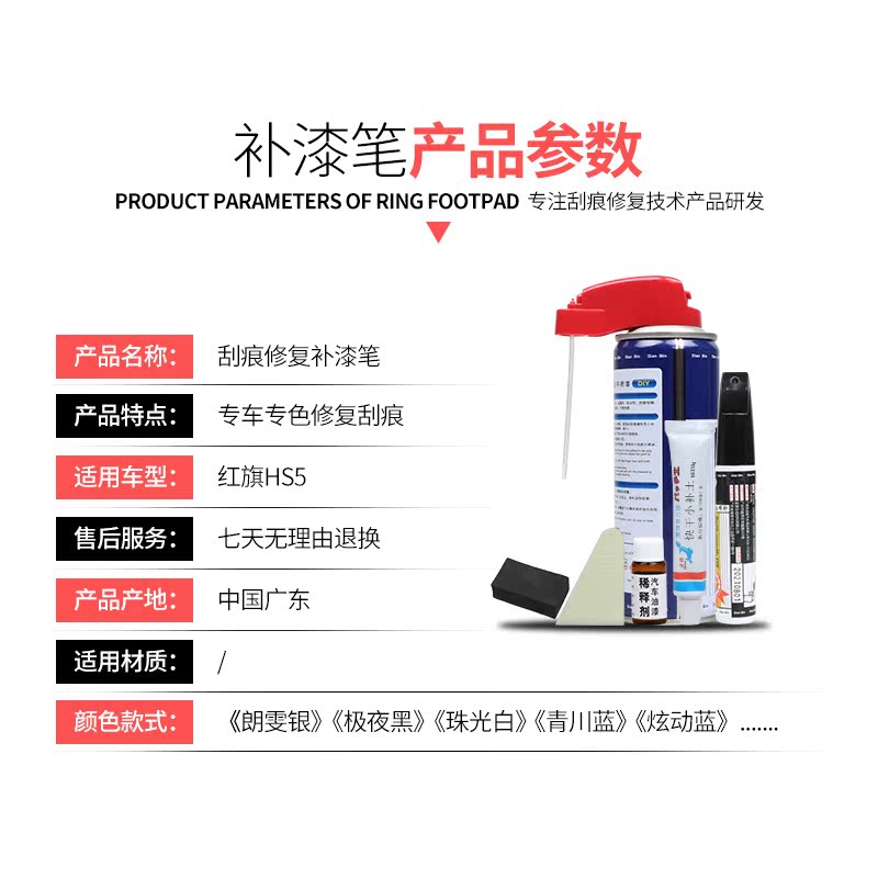 Hongqi HS5 touch-up paint pen extreme night black pearl white Qingchuan blue car scratch repair artifact hand-cranked spray paint can