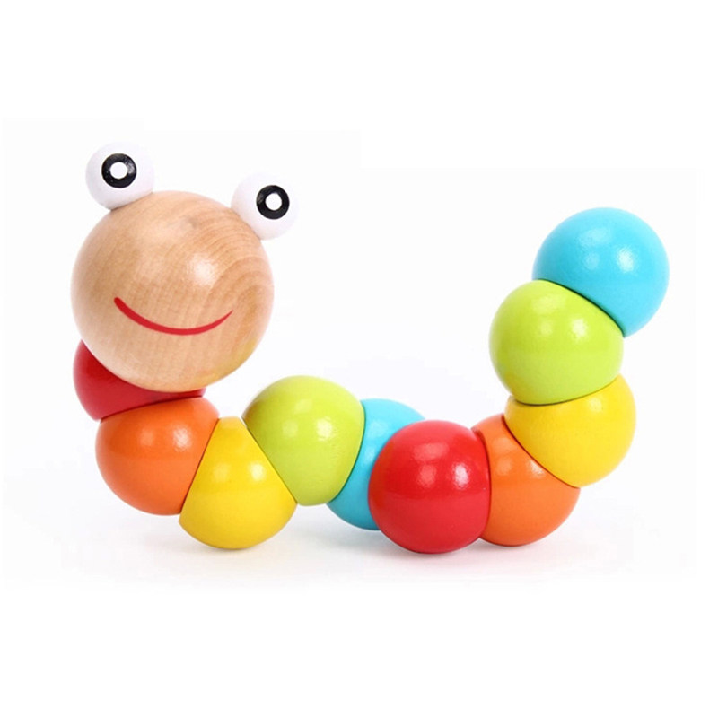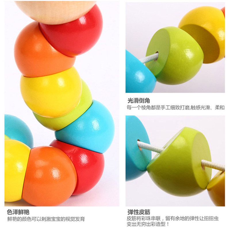 Children 100 Twist Twist Worm Wood Caterpillar Color Building Block Baby Color Cognition Puzzle Early Teach Toy String-Taobao
