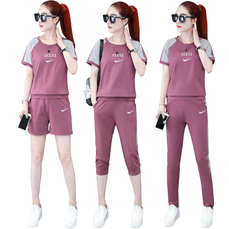 Pink (short sleeve long pants) black (short sleeve long pants) pink (short sleeve long pants) pink (short sleeves seven pants) black (short sleeves seven pants) blue (short sleeve seven pants) pink (short sleeves seven pants) pink (