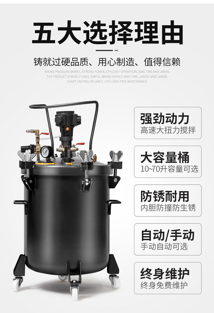 Strong power paint vertical pneumatic stirring pressure barrel stainless steel inner poking paint carbon steel high pressure automatic stirring