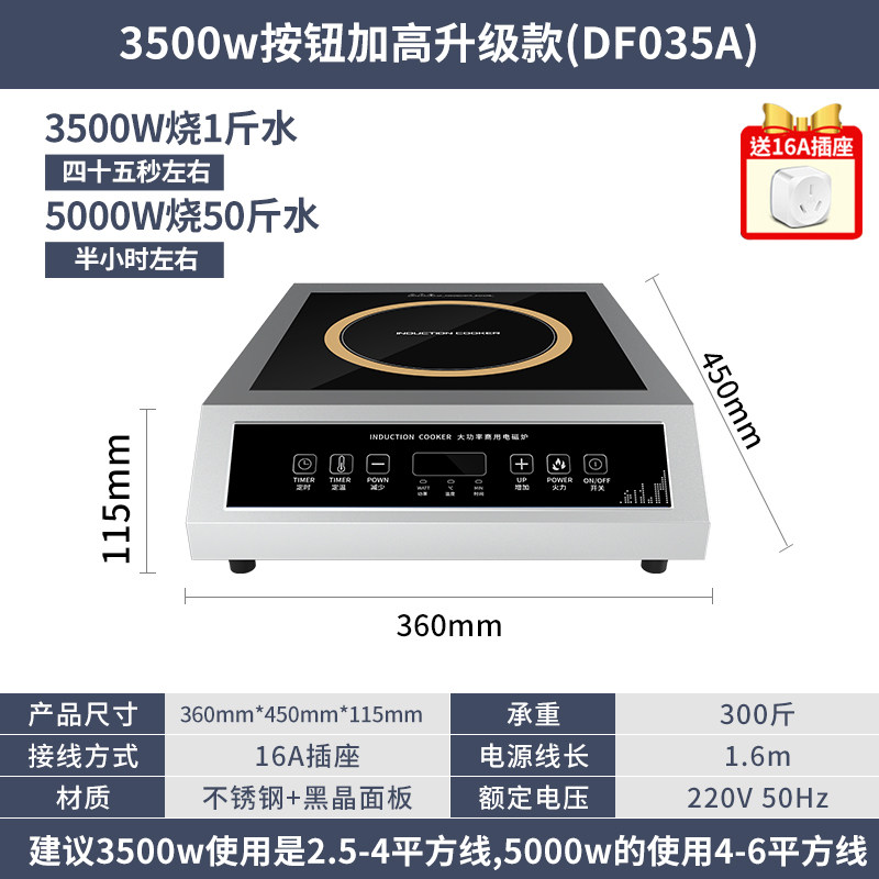 Westpool Commercial Induction Cooker 3500w High Power Stainless Steel Knob Stir-fried Concave Induction Cooker Electrical Waterproof