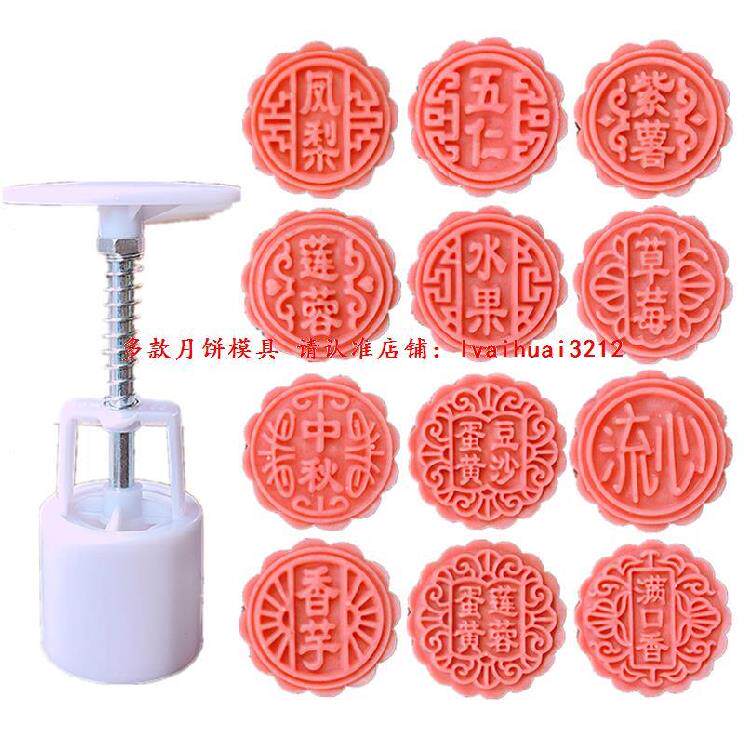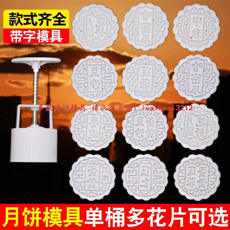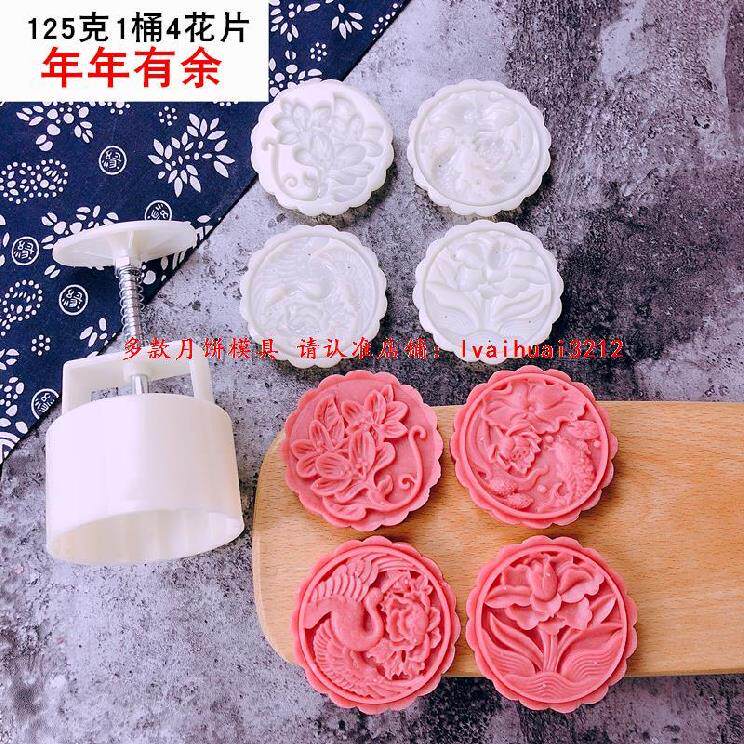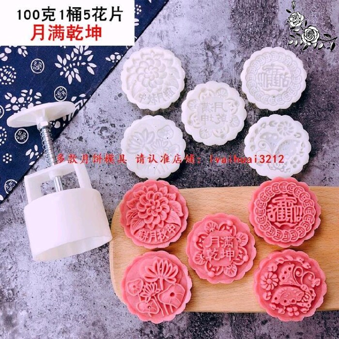 The large model of the mold for making moon cakes is printed with five kernels flowing heart 50g with the word egg yolk blessing 100g mid-autumn dessert