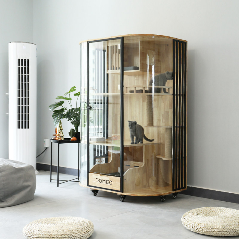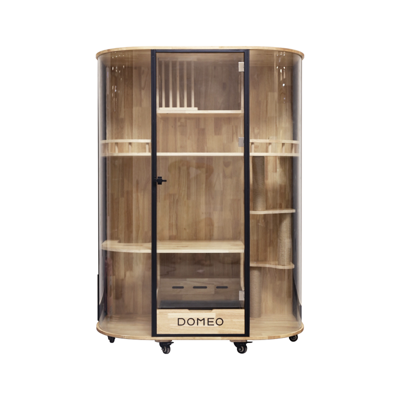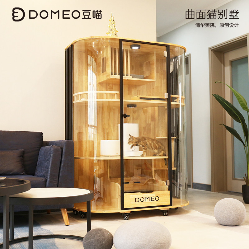 DOMEO bean Meow Original curved panoramic cat Villa glass transparent luxury solid wood cat cabinet cat house cat cafe showcase