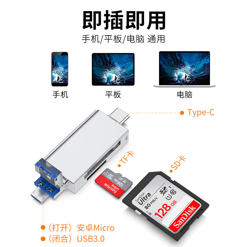 Card reader multi-in-one conversion sd card multifunctional mobile phone computer tablet usb3 0 high-speed camera memory card u disk Android Huawei typec universal tf driving recorder otg adapter