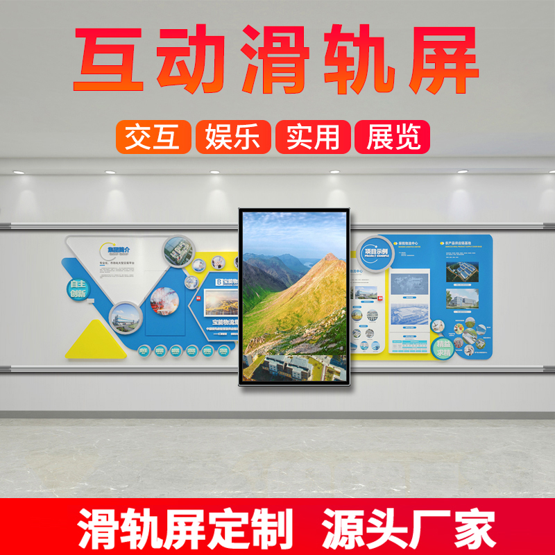 Customize the interactive slide rail screen TV Party building electric push pull-out lonel-shaped slide rail All multimedia exhibition hall