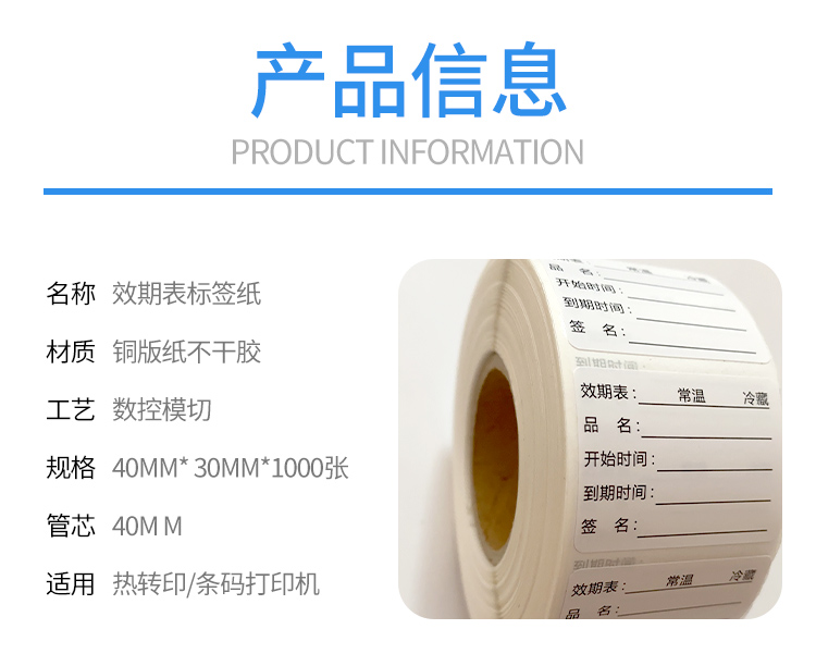 Validity label Card sticker Product name Validity table Sticker Time bar Food shelf life Production date Custom self-adhesive