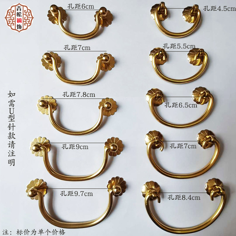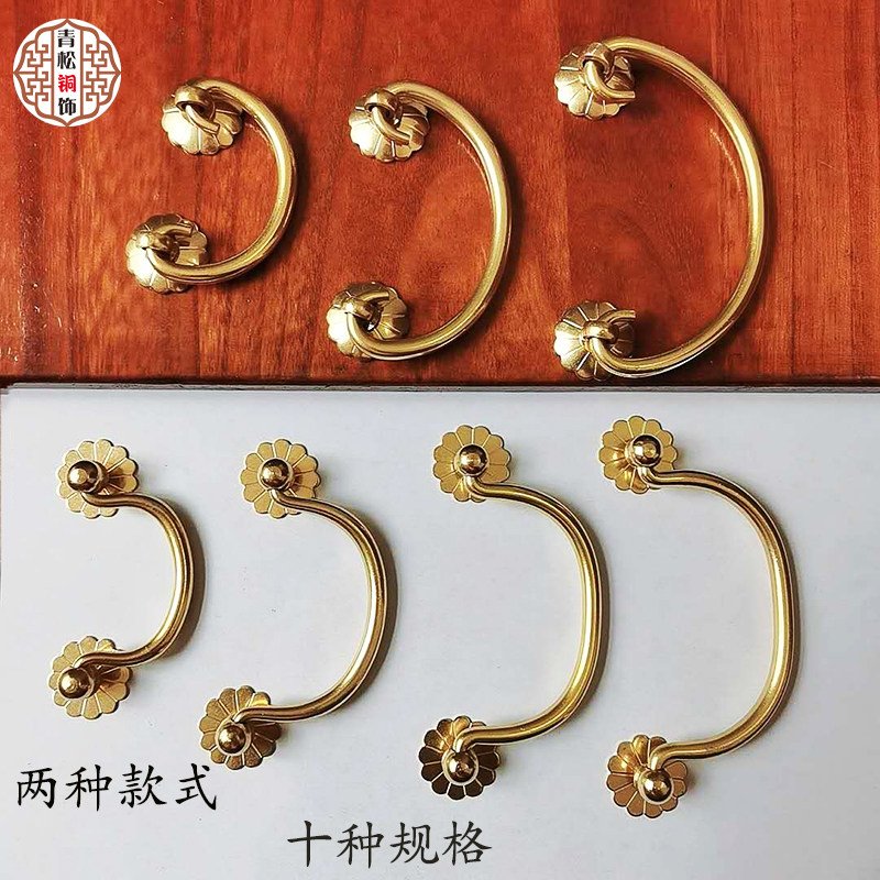 Chinese retro pure copper desk small handle solid brass drawer handle simple antique mahogany furniture copper fittings