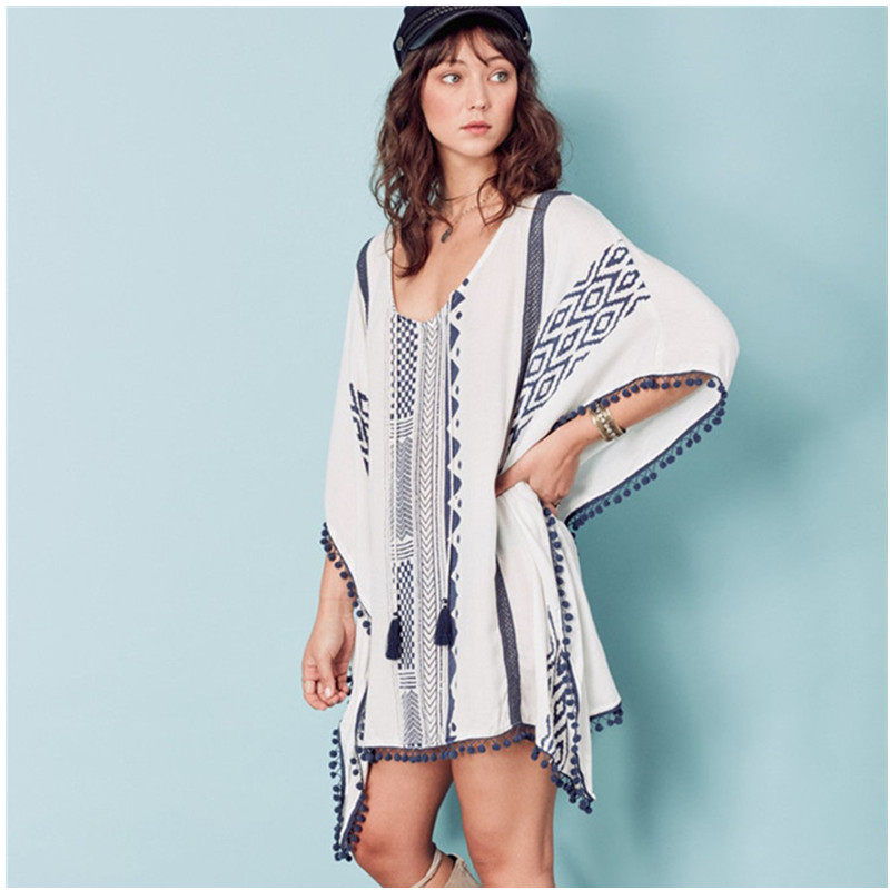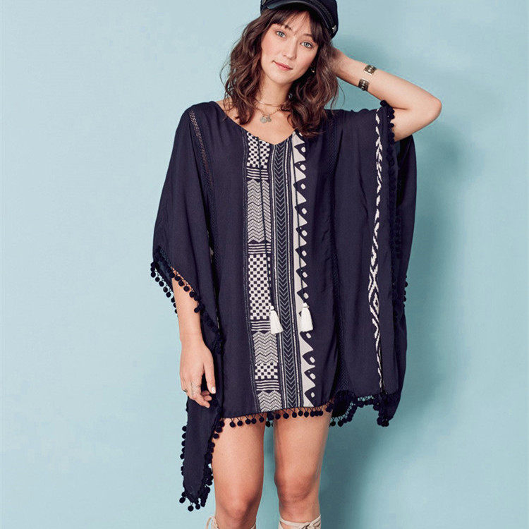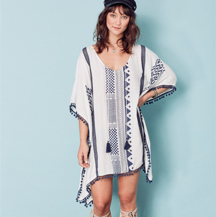 Seaside holiday skirt loose large size rayon embroidered beach skirt bikini suit jacket smock sun protection smock women