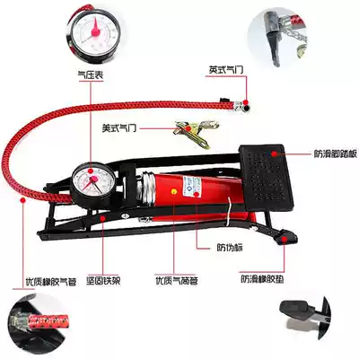 Small car pump with air pressure gauge Portable motorcycle foot pump rod Tire pump Manual