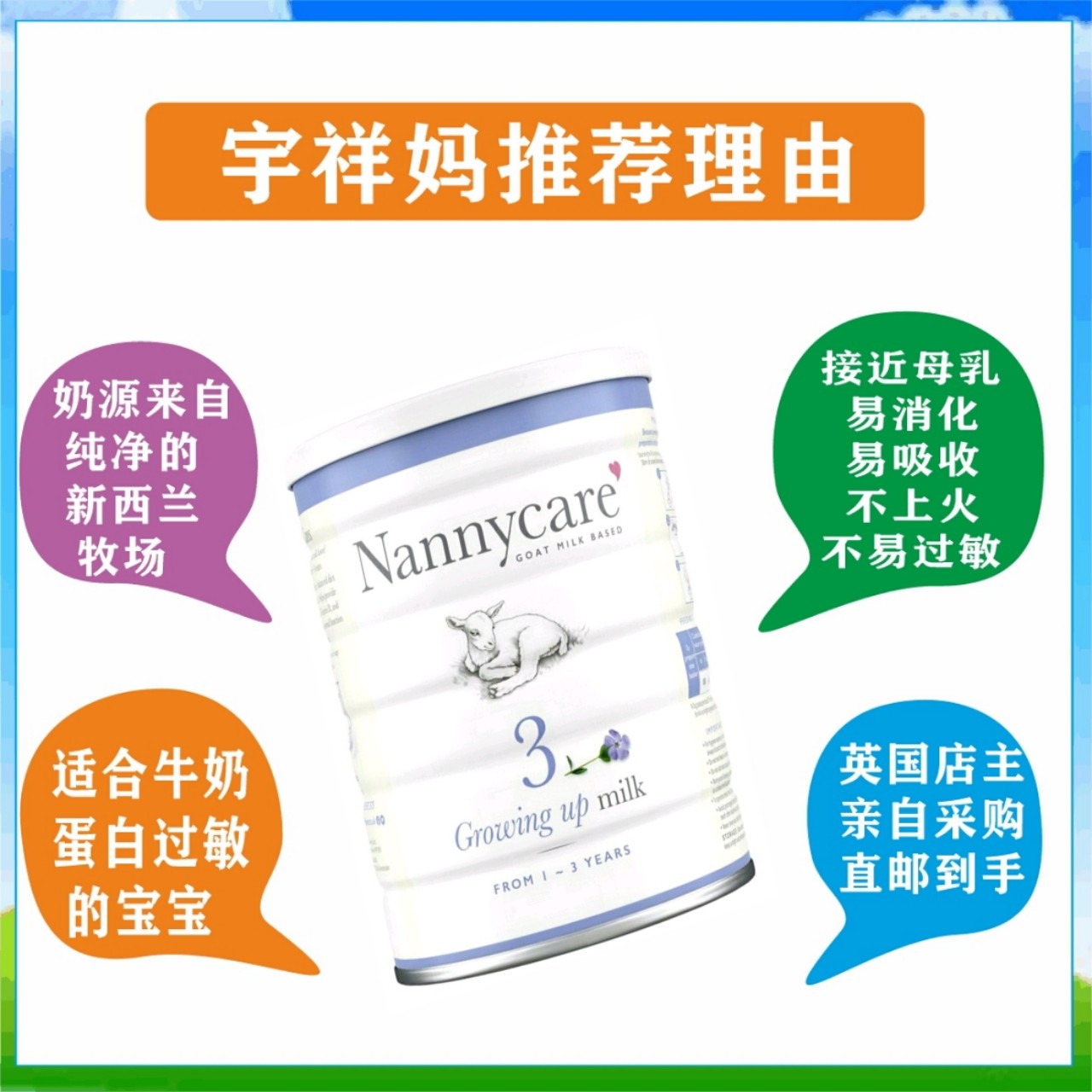 British direct mail high-end infant goat milk powder Nanny Care 900g 1 section 2 section 3 section supermarket film
