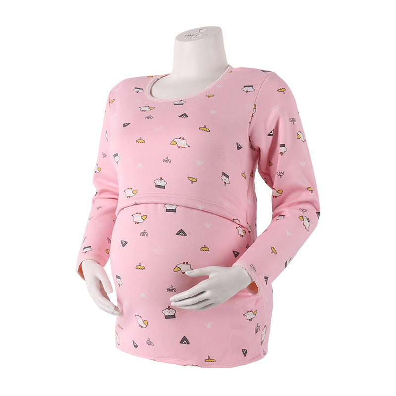 Pregnant women warm coat plus velvet thickened single layer postpartum breastfeeding autumn clothing large size cotton pregnancy base shirt autumn and winter