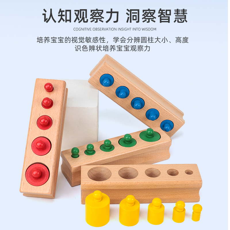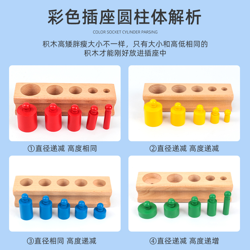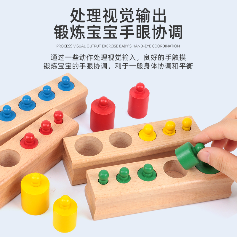 Monte Montessori Monte Early teaching aids Colour socket cylindrical Early childhood pre-school Wooden Sensory Toys