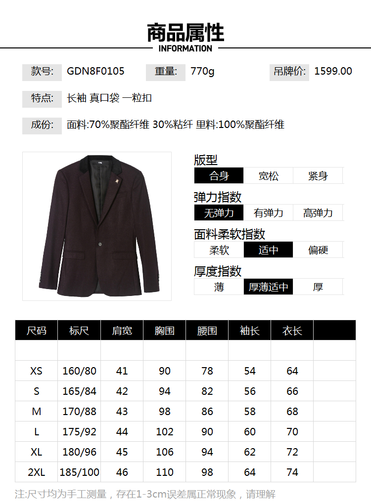 Clearance Purchase #9 Charm High-end Business GDN8F0105 Suit Jacket Men Business Spring