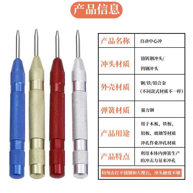 Gold automatic center punchSilver automatic center punchBlue automatic center punchRed automatic center punch