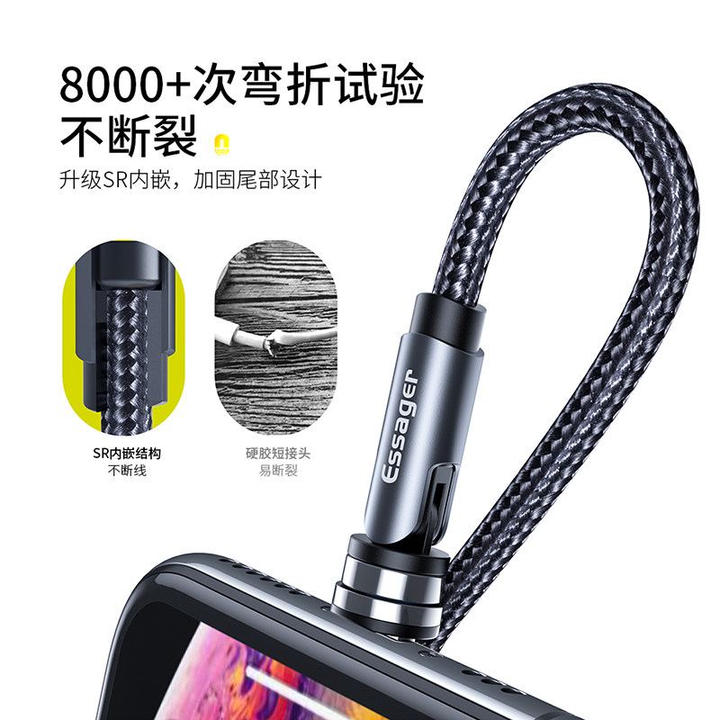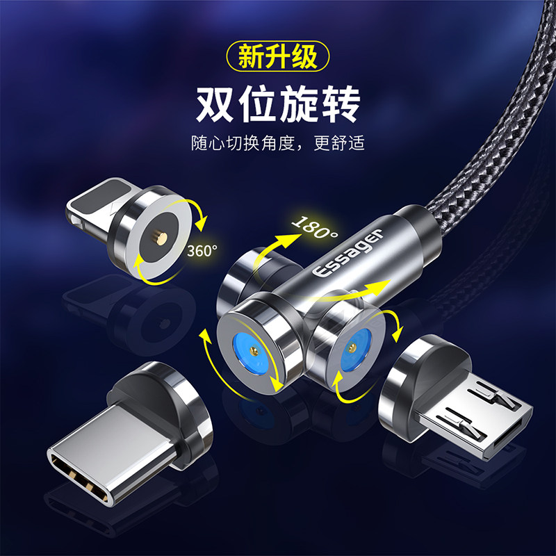 Essager magnetic suction rotating data cable elbow car charging cable magnetic strong magnetic suction head mobile phone type-c Huawei 6 game universal 8 Android Apple 11oppo Xiaomi 9vi