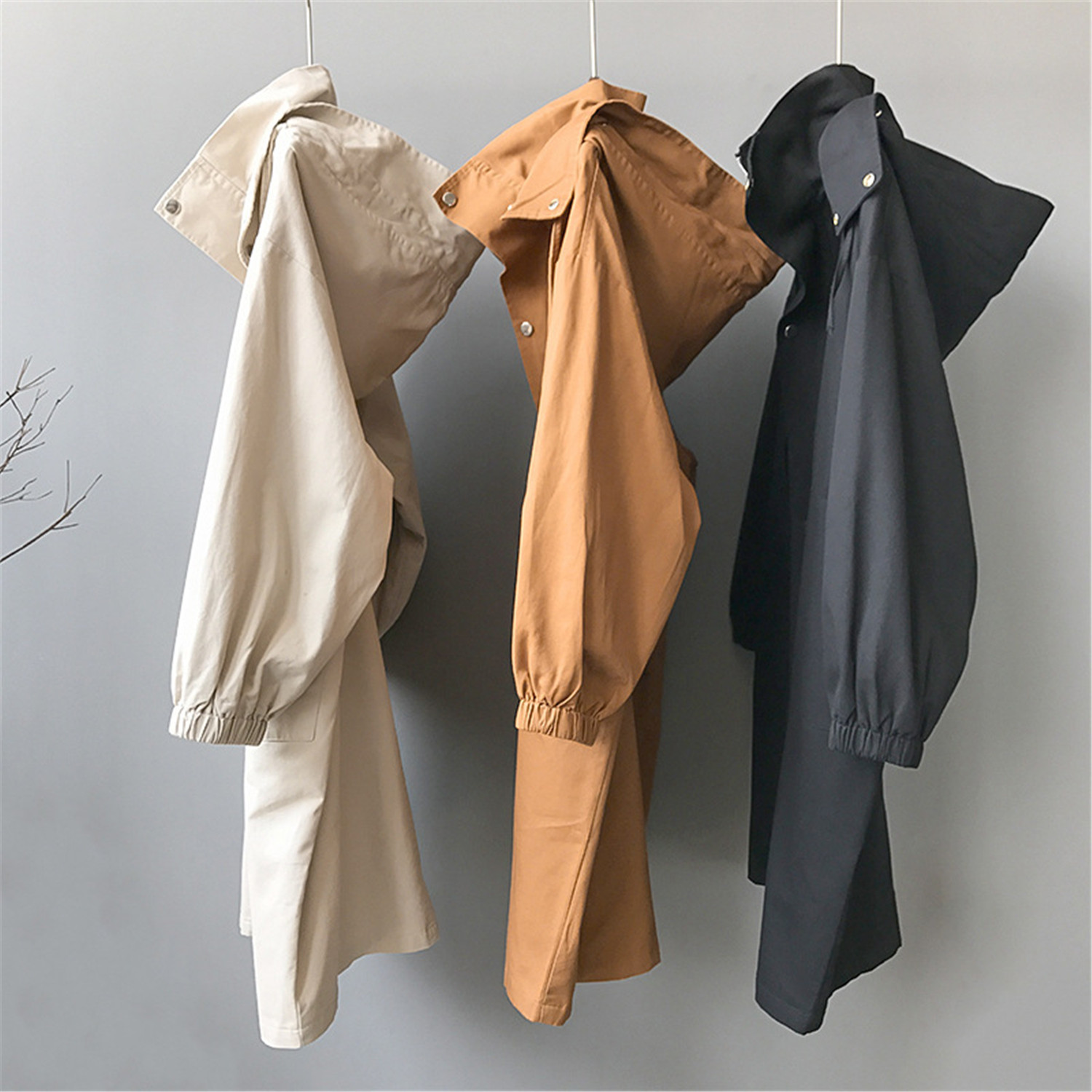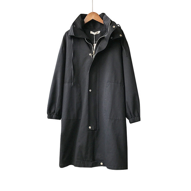2021 spring new fashion hooded medium and long version windbreaker coat female Korean version loose casual temperament fashion coat