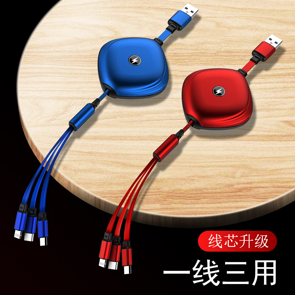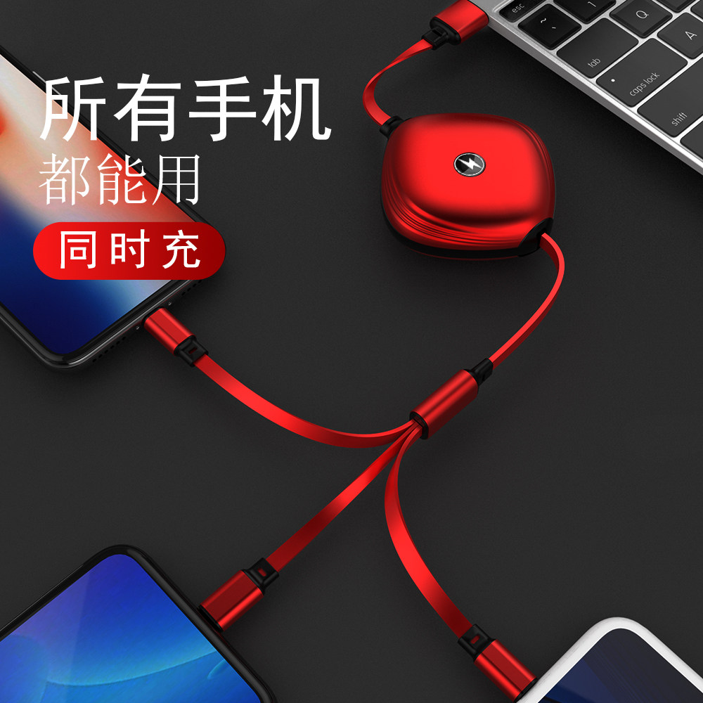 Mobile phone three-in-one data cable one-to-three telescopic charging cable device is suitable for Huawei fast charging and lengthening Apple Android type-c
