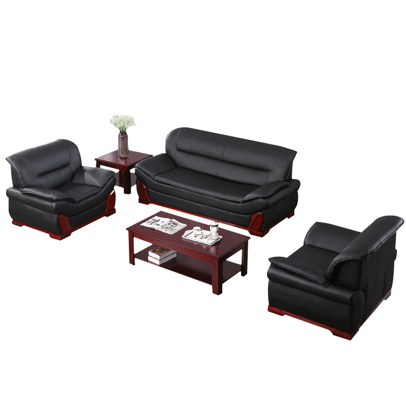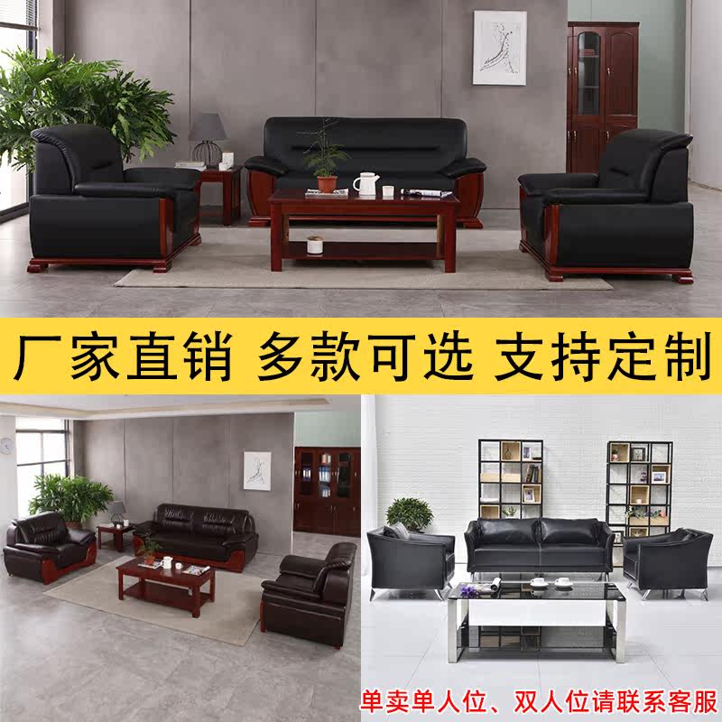 Real Leather Cipi Office Sofa Tea Table Combination Brief Modern Cow Leather Business Sofa Reception Guest Single Trio