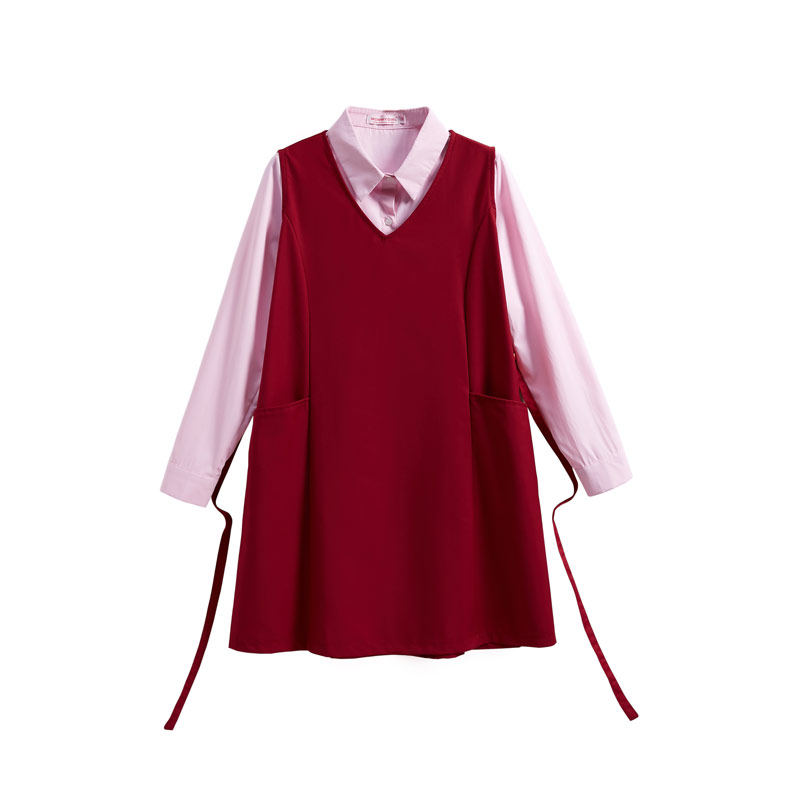 Large red vest dress (without shirt) wine red vest dress (without shirt) Wine Red Vest Dress Pink Short Sleeve Shirt Wine Red Vest Dress Pink Long Sleeve Shirt