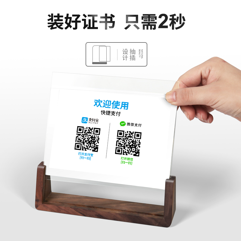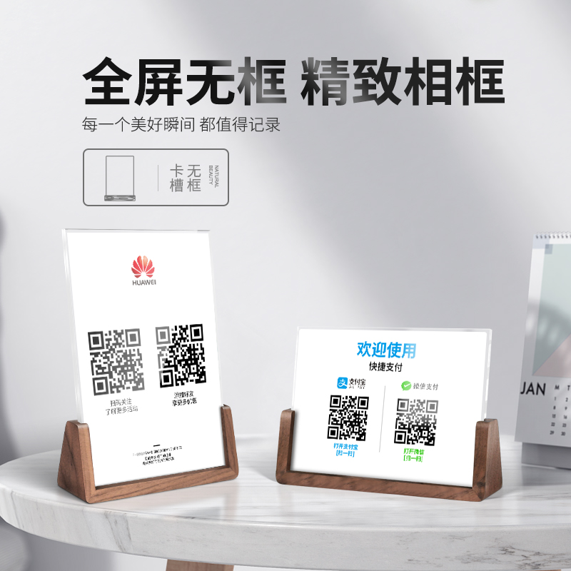 Table card table acrylic QR code display card dining table standing wooden table display stand advertising menu wine dinner plate A5 transparent double-sided vertical price list high-grade solid wood table sign