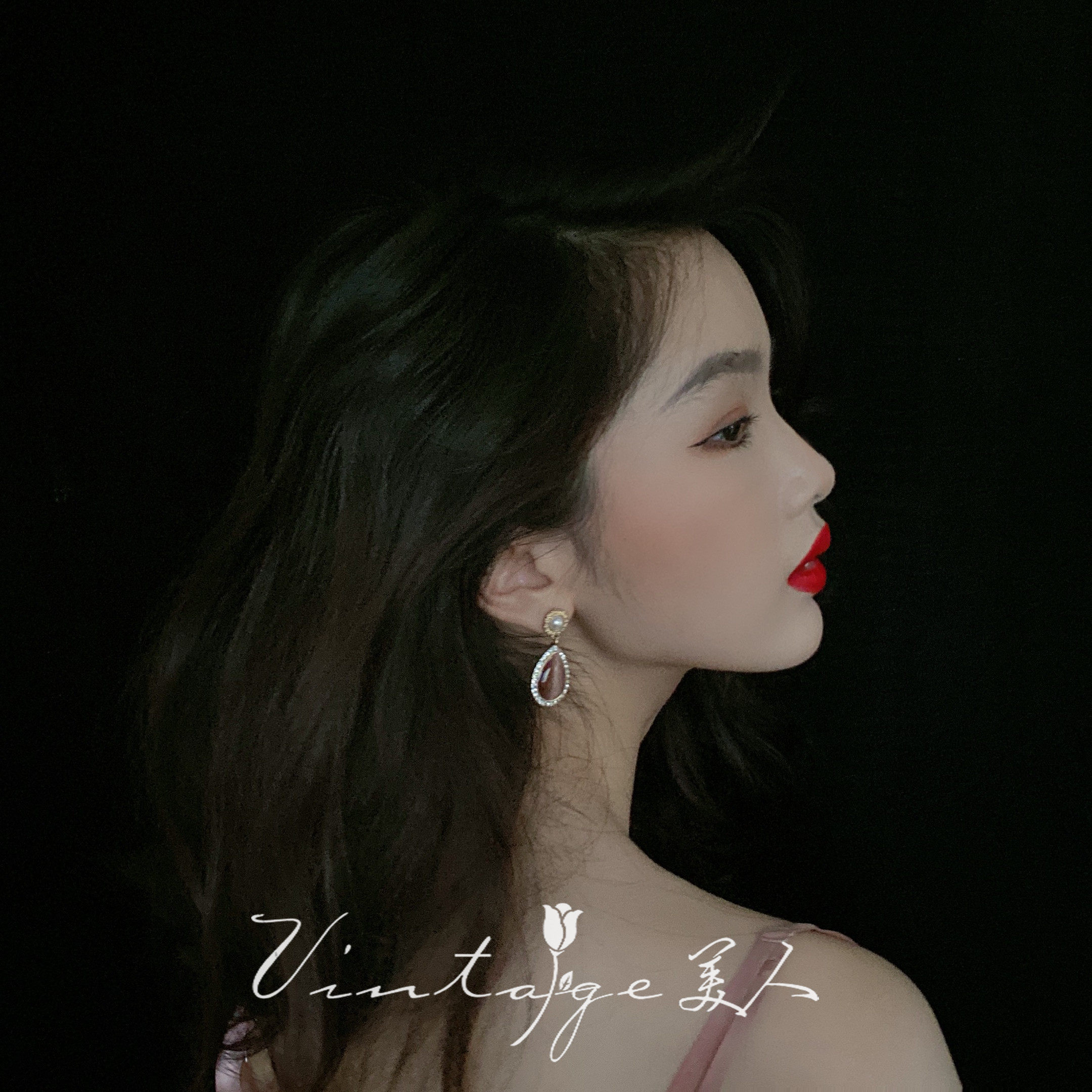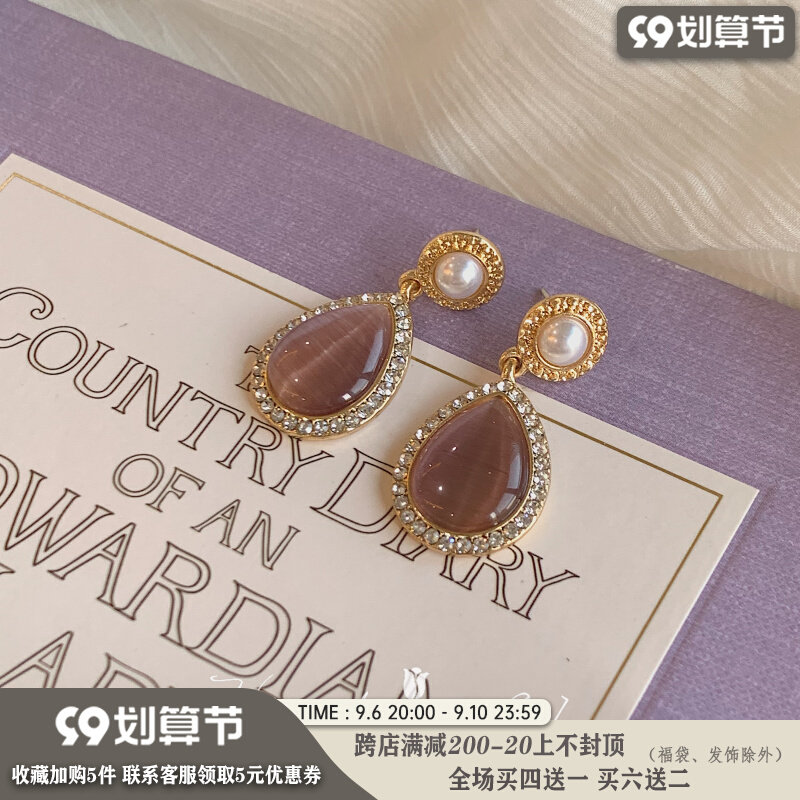 "Versailles Castle" retro court gentle, exquisite, beautiful and elegant droplet purple gemstone earrings ear clips