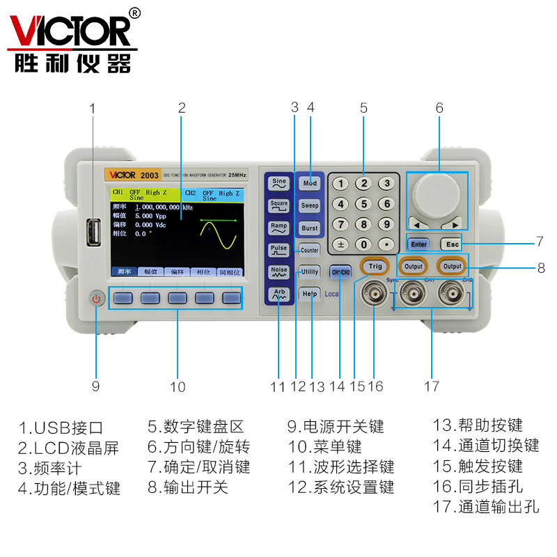 Triumph Instruments (VICTOR) Dual Channel Functions Signal generator VC2003 Arbitrary wave generator