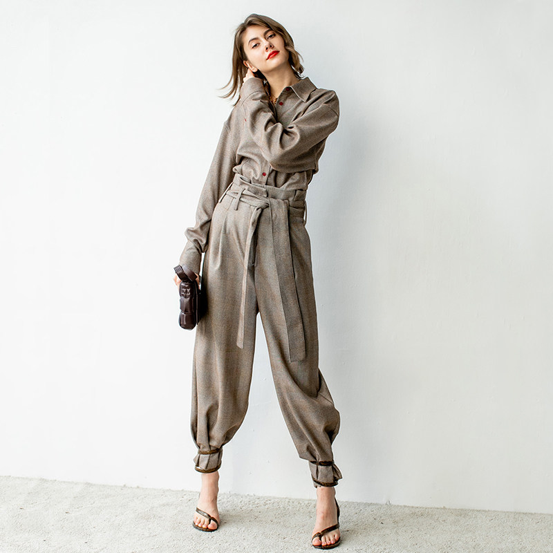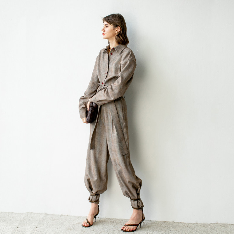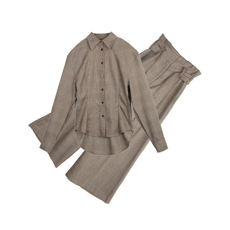 Jade Shadw original design fashion temperament suit shirt high waist broadleg pants two pieces