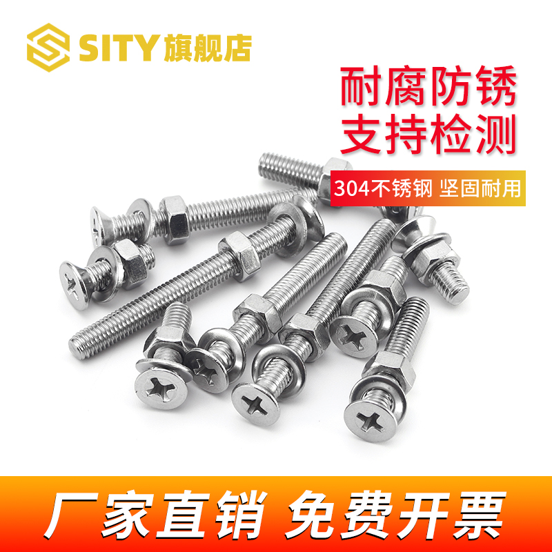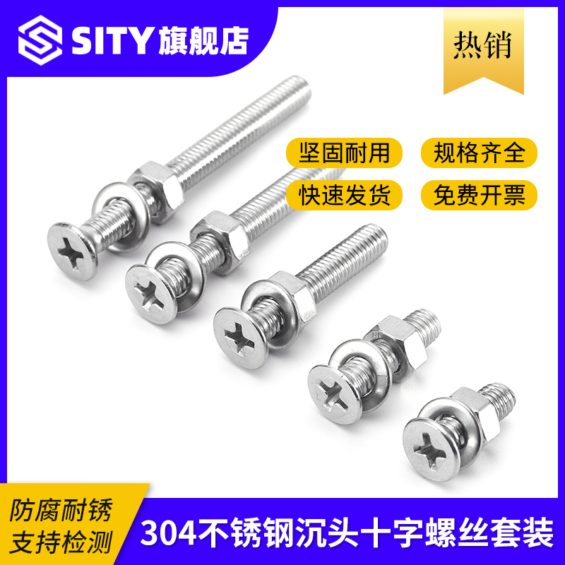 304 stainless steel countersunk head cross screw combined nut flat cushion flat head screw suit M2 5M3M4M5M6