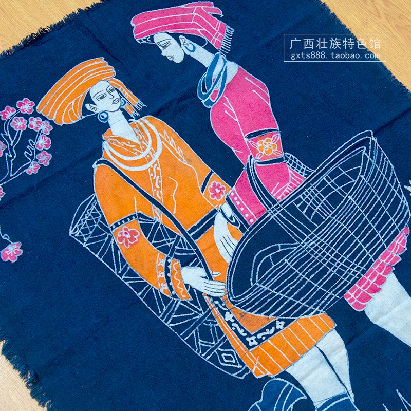 Guangxi national style Batik painting Folk customs inn bed and breakfast decorative hanging painting cloth art hand-painted creative murals
