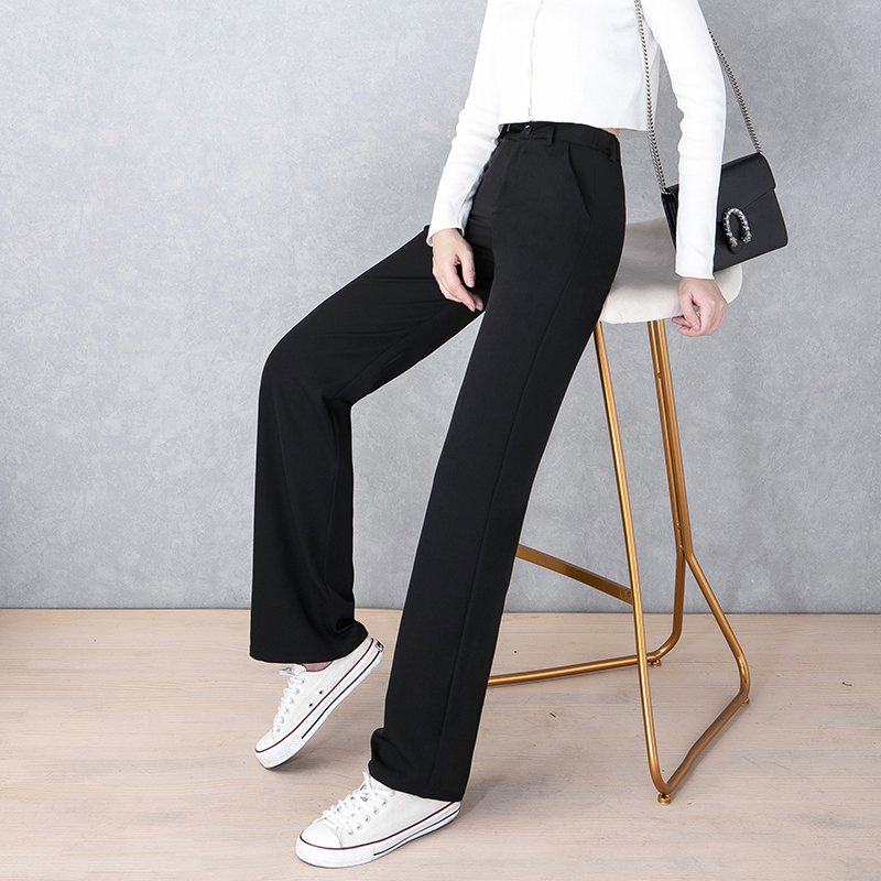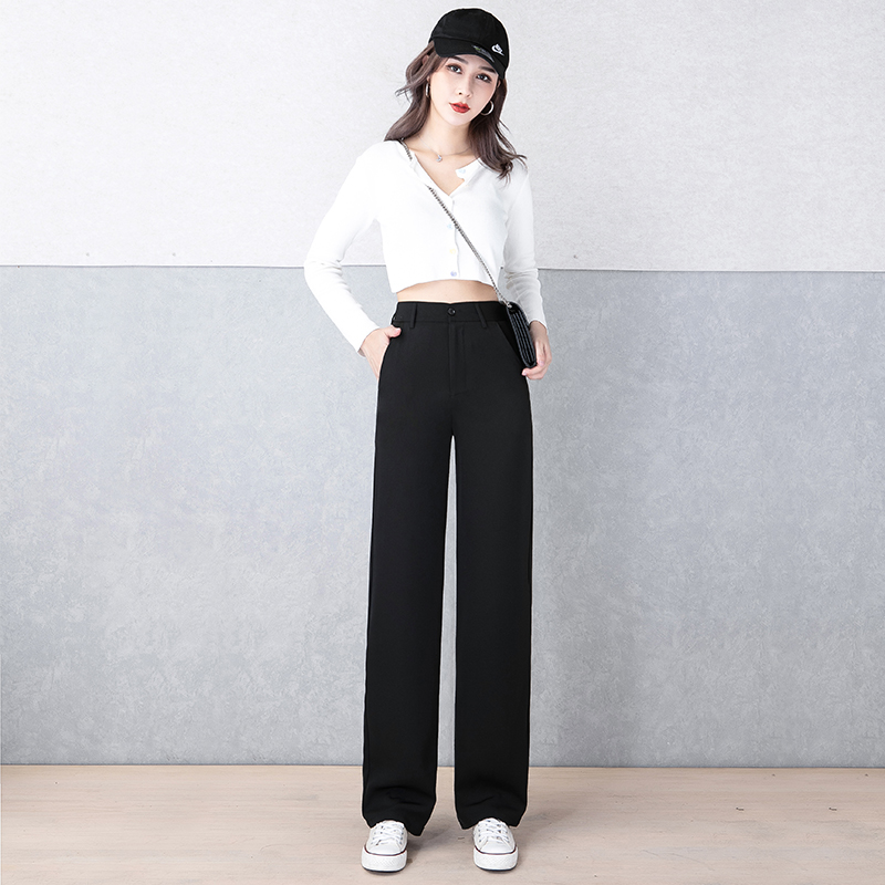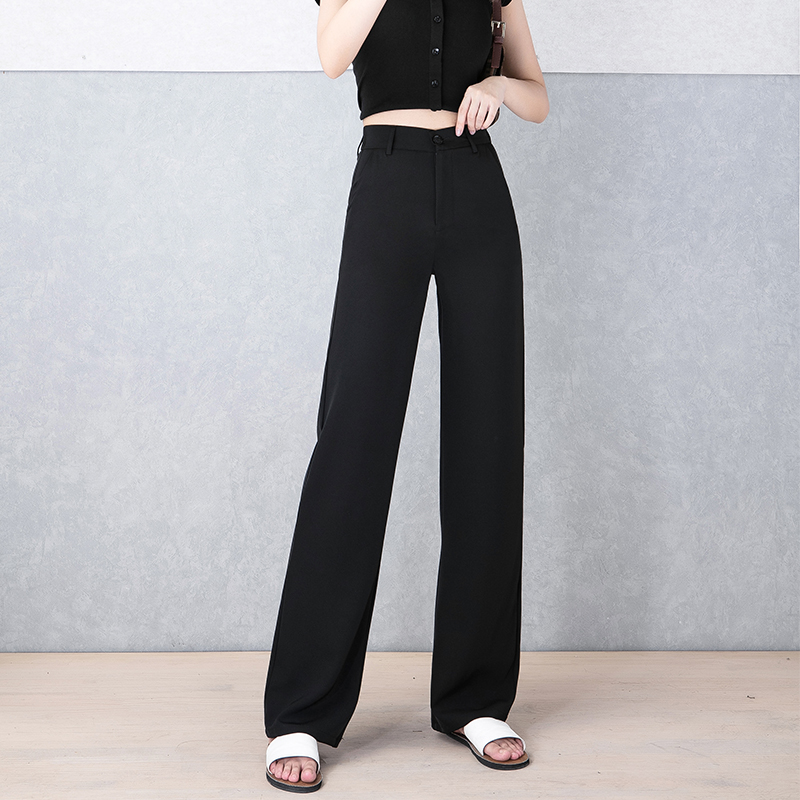 Wide leg pants women's spring and summer high waist hanging suit pants loose small mopping casual pants straight thin black trousers
