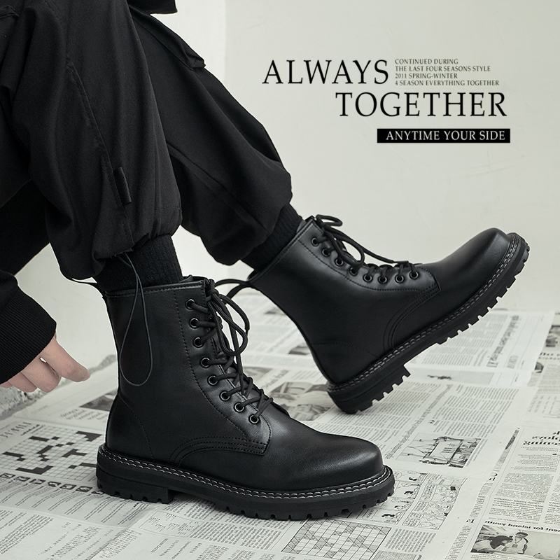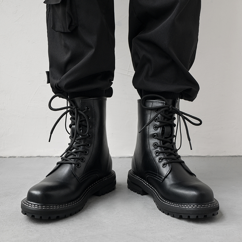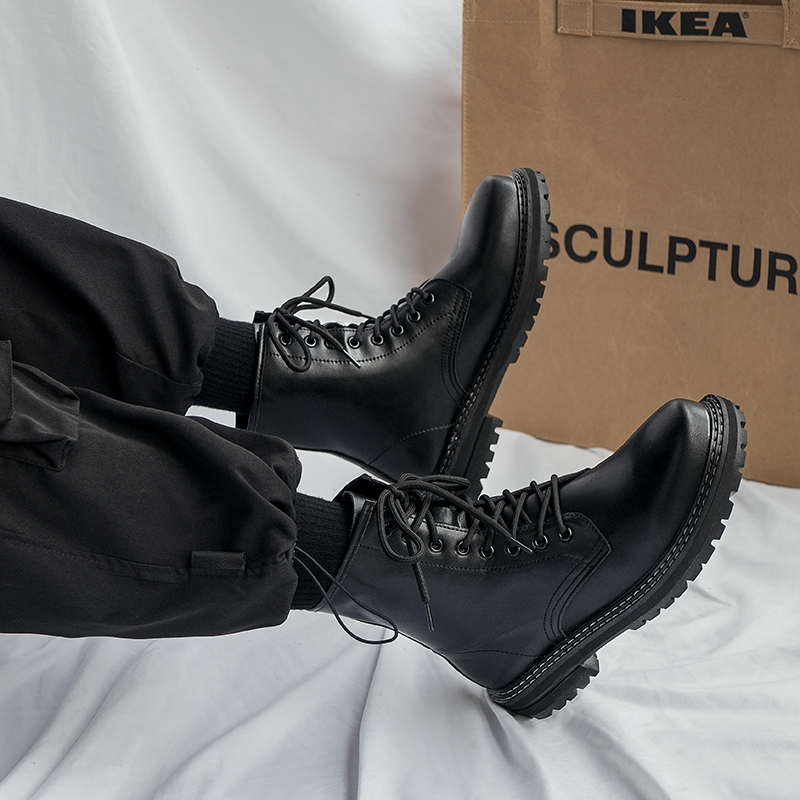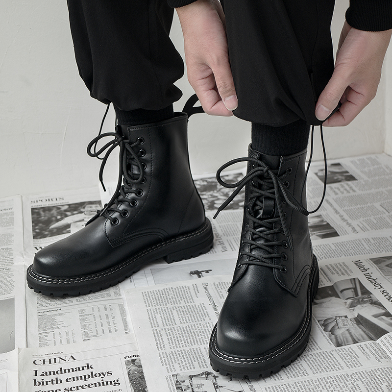 ins Martin boots man winter breathable genuine leather spring autumn style Inlenty wind tooling boots high cylinder leather boot tide locomotive boots
