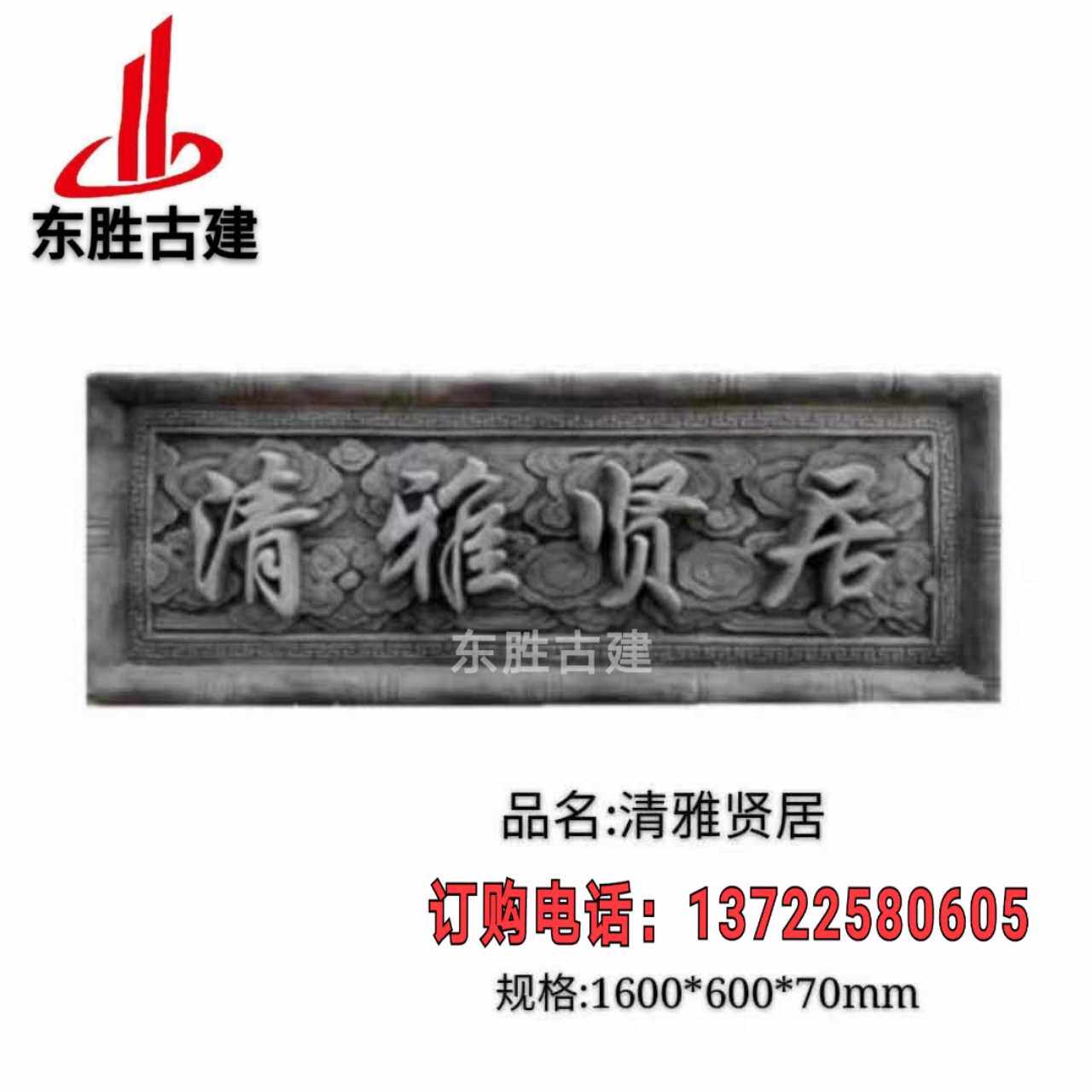 Chinese style Gate Plaque Forehead rectangular Qingya Idle Residence Brick Sculptures Ancient Jianmenlou Plaque Green Brick Engraved Character Relief Fresco