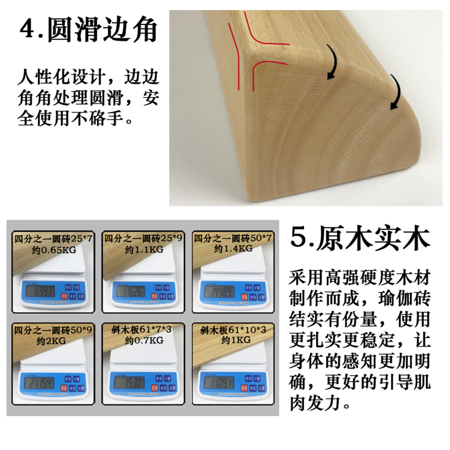 Iyengar Solid Wood Yoga Brick Quarter Round Brick Curved Brick Auxiliary Inclined Wooden Board Yoga Assist Stretch Wood Brick
