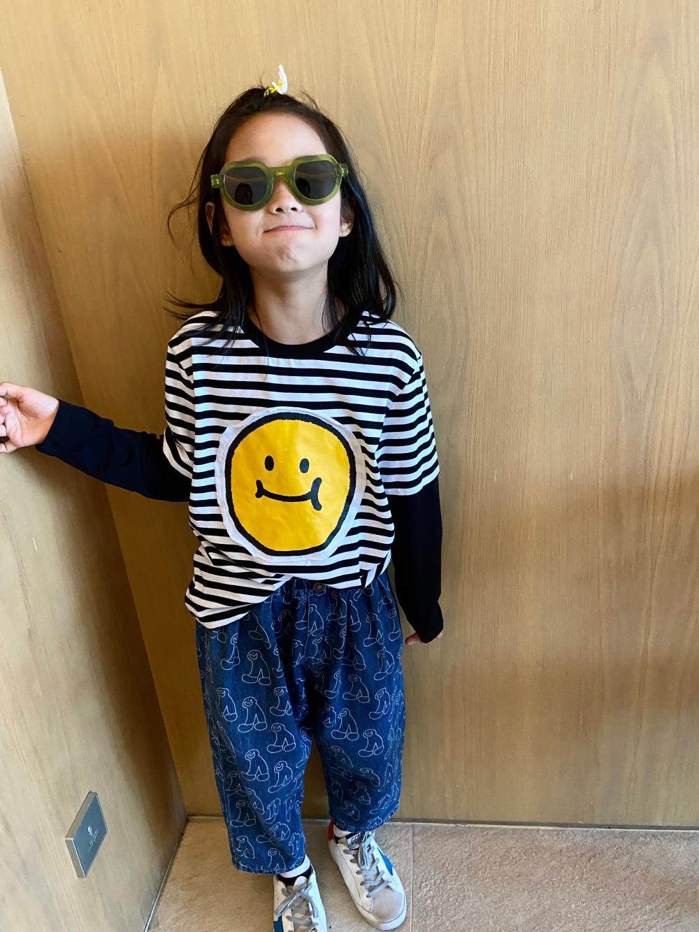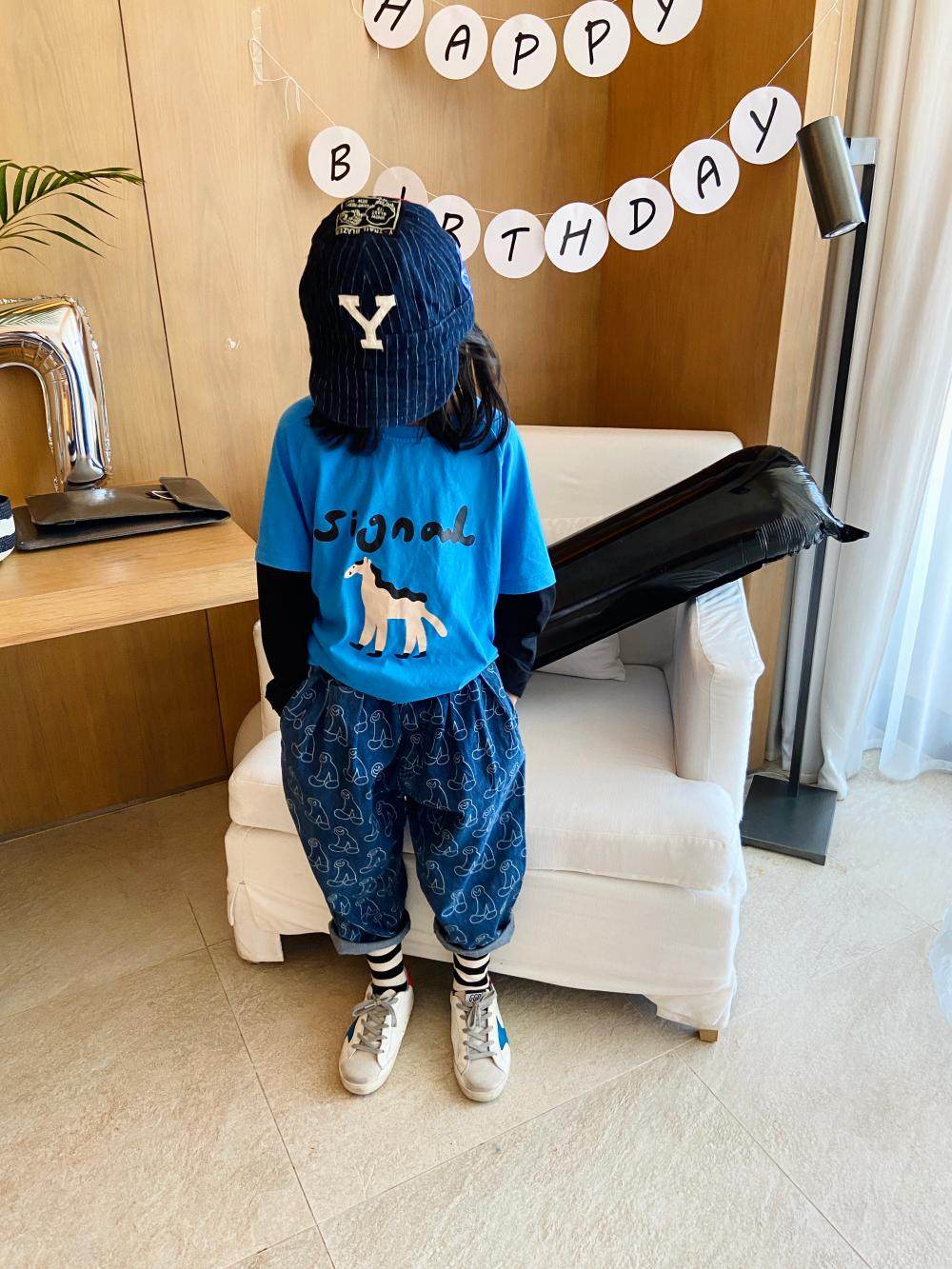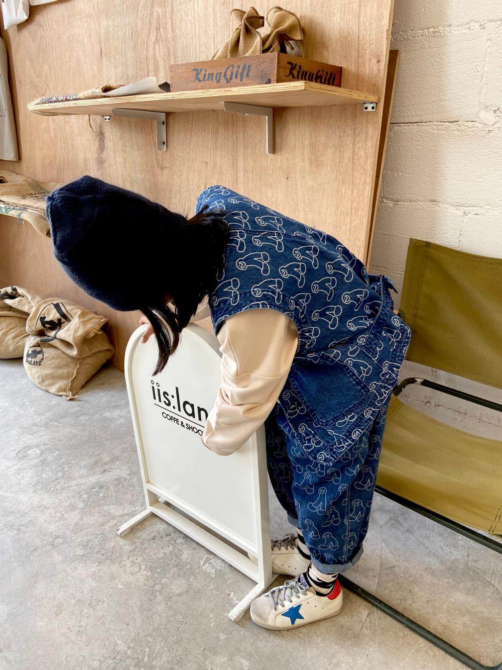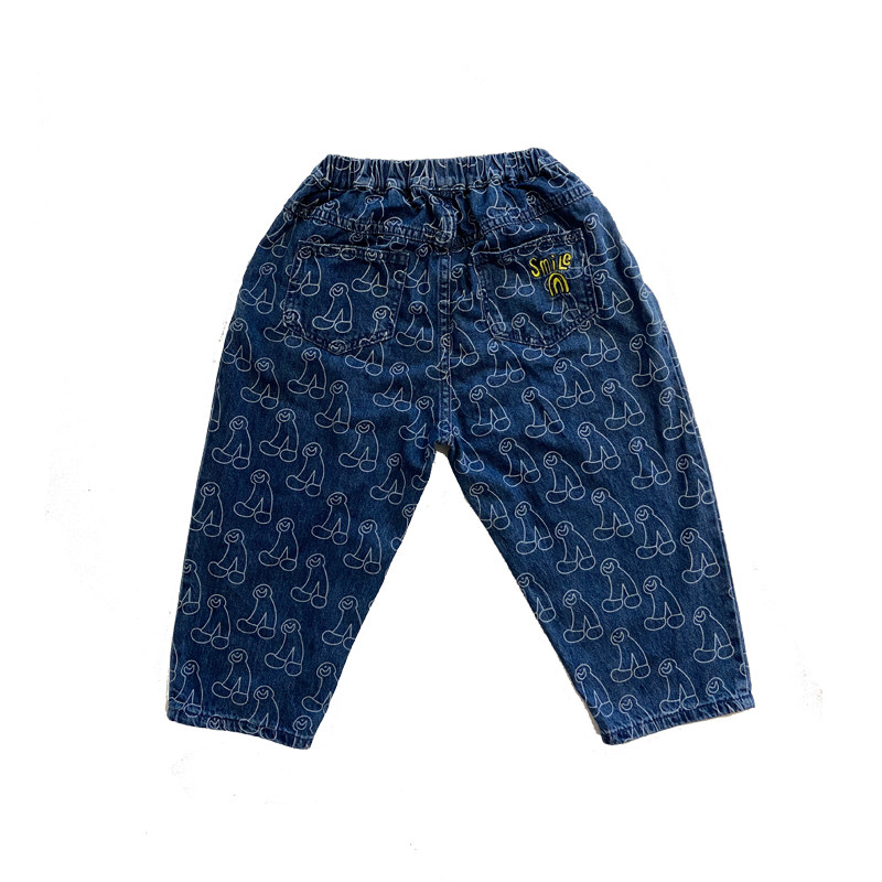 OMIOMI original autumn design Ocean school heavy industry full printing 9 points unisex children's clothing denim ribbed pants down pants