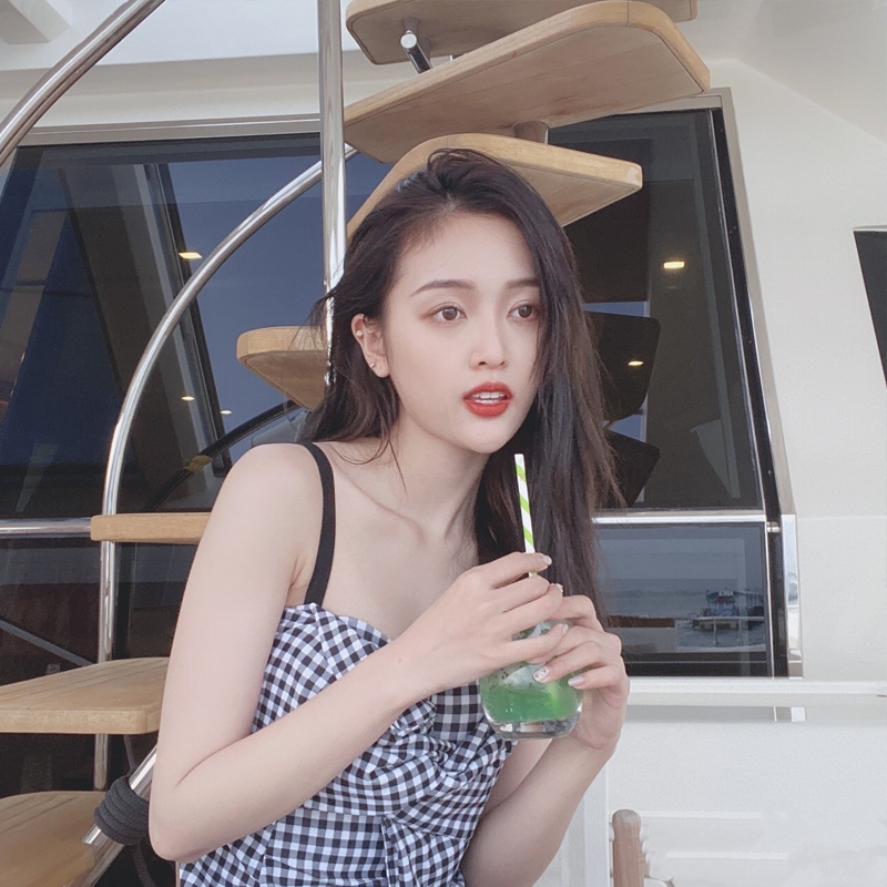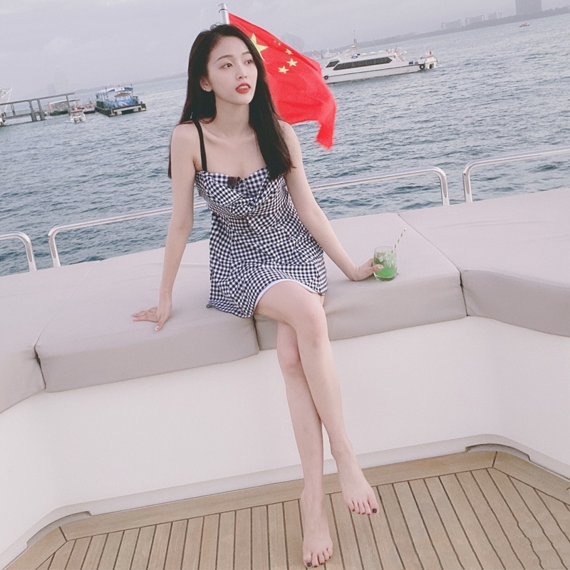 Wu Xuanyi star with the same plaid dress two-piece boxer swimsuit female conservative student ins Korea