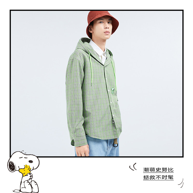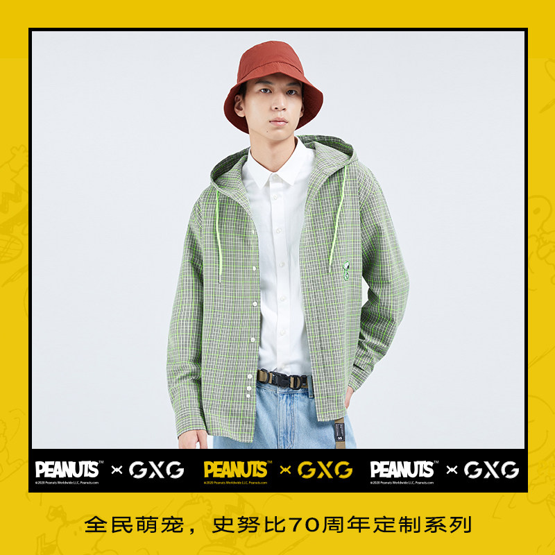 GXGx Snubi joint section 2020 Winter new pint of cartoon embroidered grunge with cap long sleeve shirt lined with male
