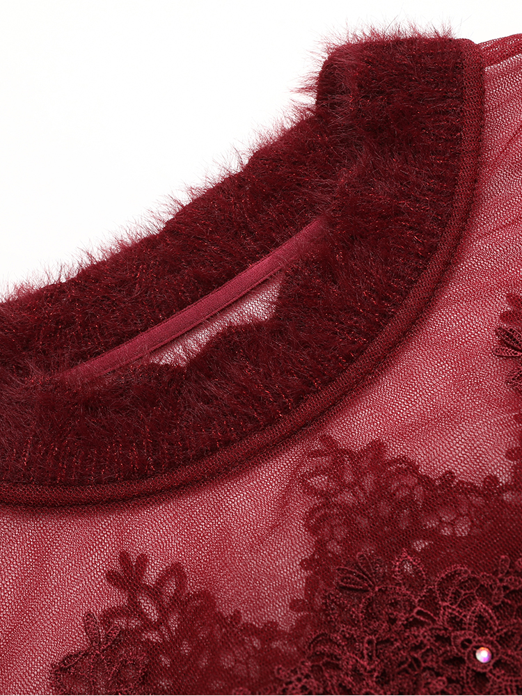 MAXRIENY winter new retro elegant long-sleeved pullover lace patch embroidered mohair knitted sweater women
