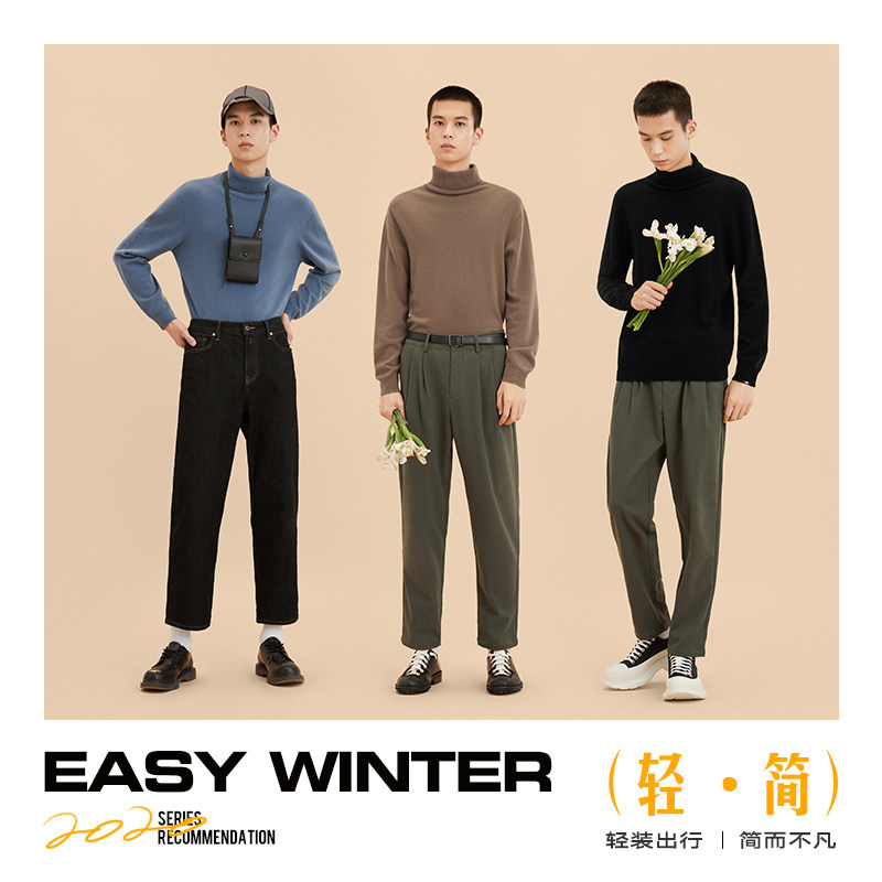 GXG Men's Light Jane Multicolor Basic High Neck Cashmere Sweater Knit Shirt Men Sweater 2020 Winter New Product