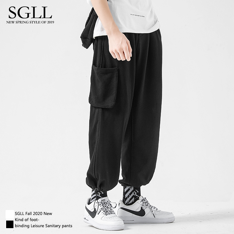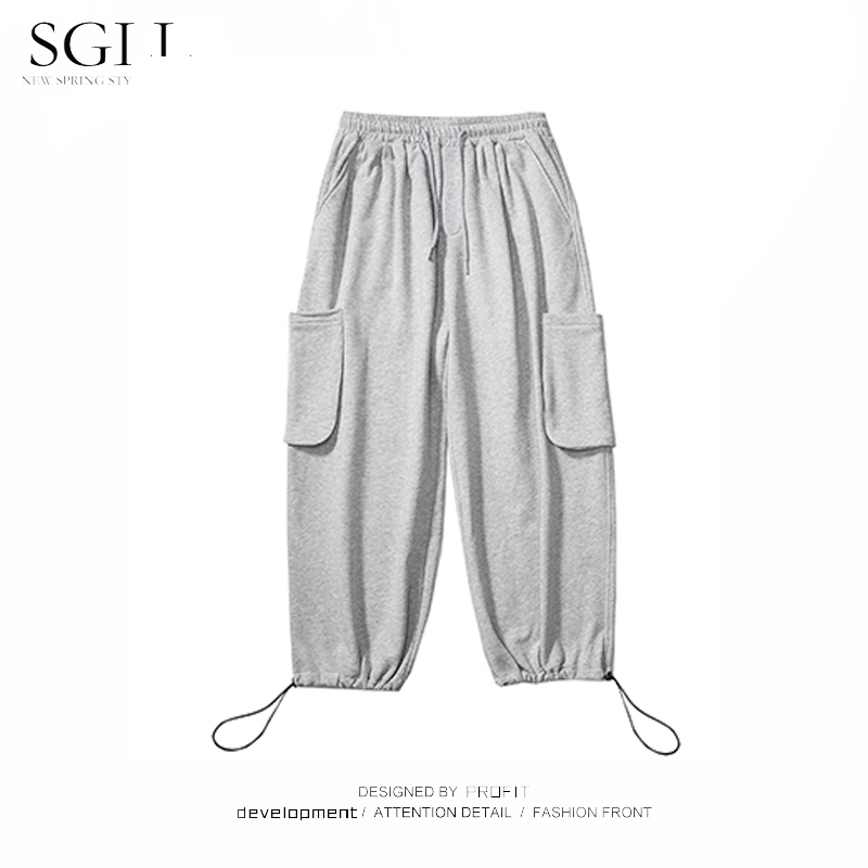 Grey Sports Thick Cotton Pants Male Tide Card Tooling Bunch Leg Pants Han Version Trend Casual Long Pants Loose Fall Beam Pants