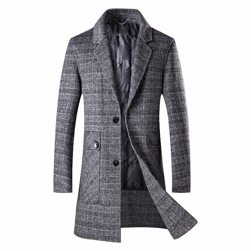 Wool woolen coat men's mid-length winter thick down lining double-sided woolen trench coat without cashmere woolen coat