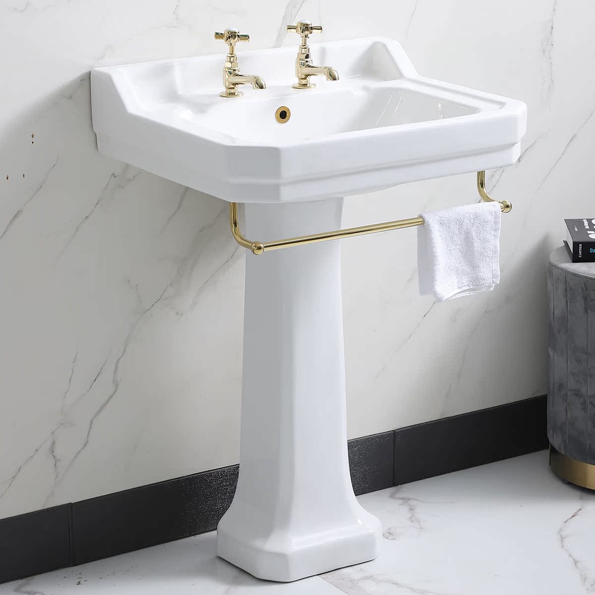 British retro small apartment balcony column washbasin toilet washbasin powder room ceramic basin washbasin