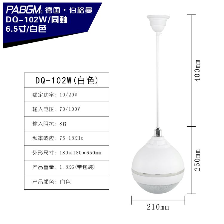 DQ-102W (white) 6 5 inches constant pressure DQ-102B (black) 6 5 inches constant pressure DQ-102W (white) 6 5 inches constant resistance DQ-102W (black