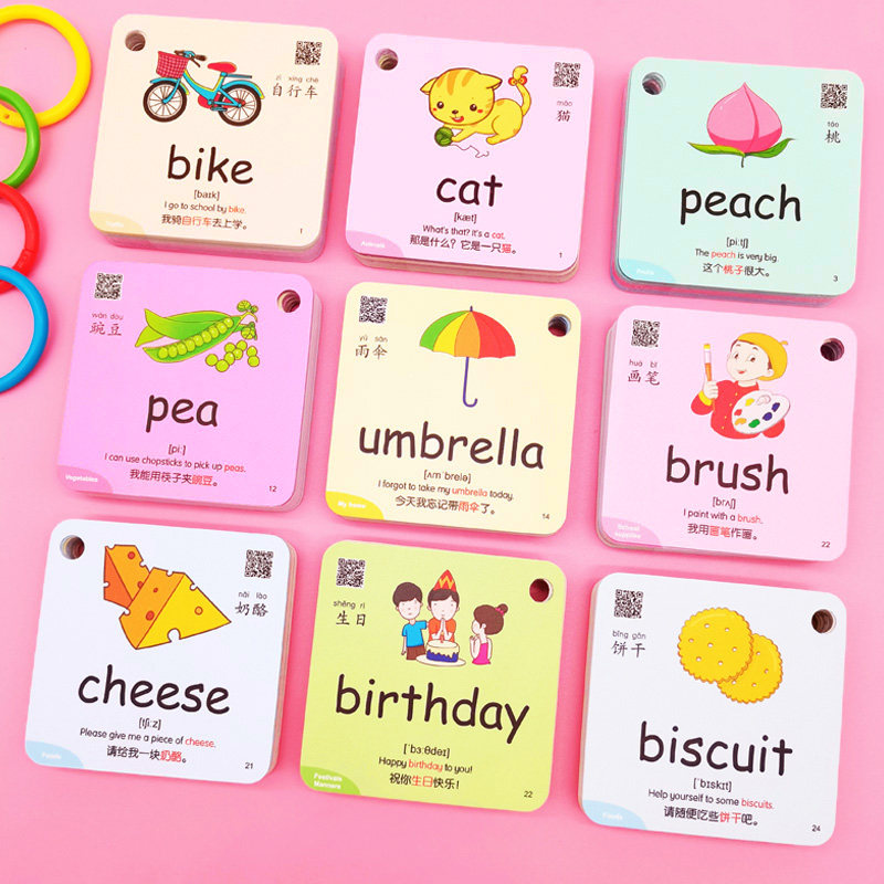 English Word Card Toddler Primary School Student Child Baby Back English Letter Early Education Enlightenment Ring Buckle Toy Card