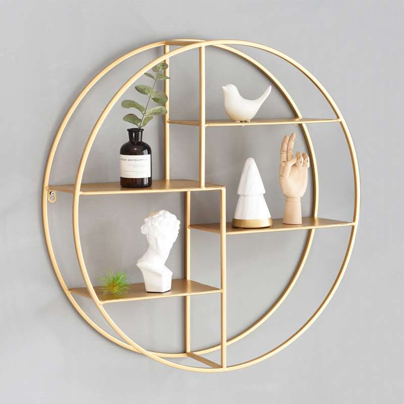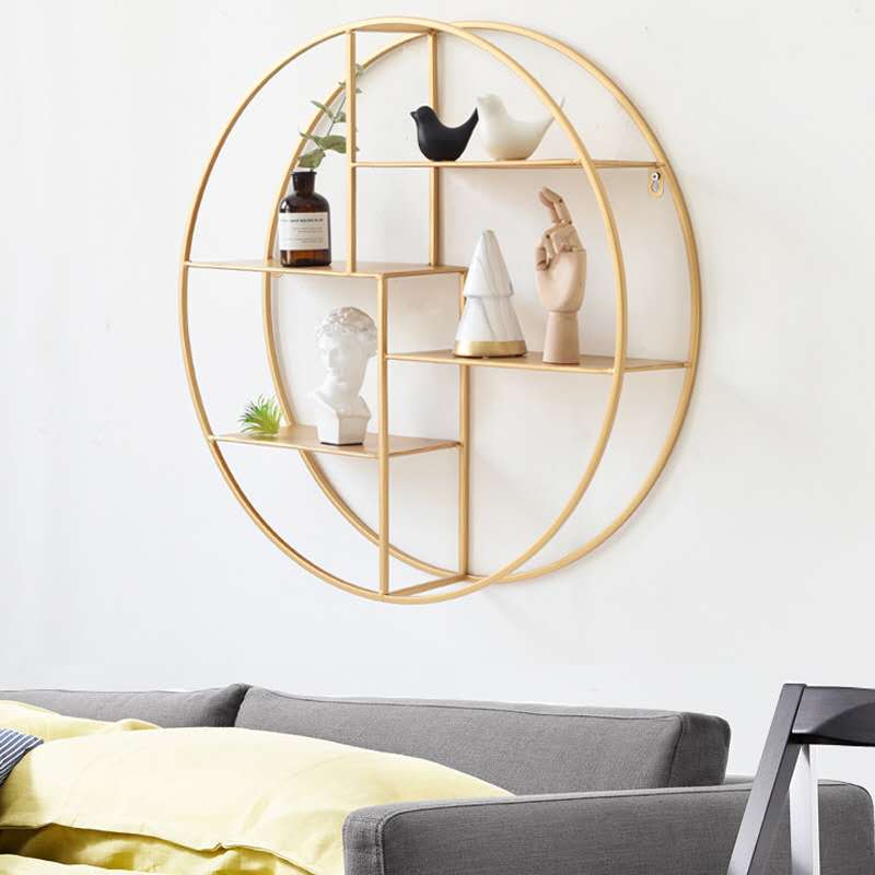 Psychological consultation room rack Nordic creative light luxury living room dining room golden partition storage wall decoration wrought iron wall hanging