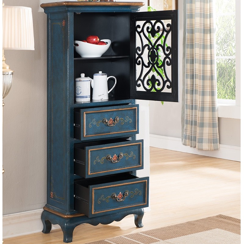 American country living room high wine cabinet entrance hall large capacity storage side cabinet solid wood retro bookcase kitchen painted cupboard